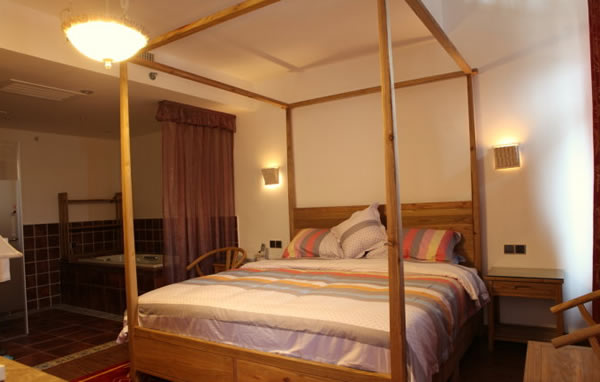 公館擁有各種特色客房35套(其中溫泉SPA客房28套、閣樓復(fù)式套間4套,浪波水床間4個),還有茶飲就餐區(qū)、自然大講堂、韓蒸時代汗蒸館、空中花園咖啡屋、創(chuàng)意棋牌室、高檔禮品區(qū)及連鎖粗糧小吃鋪等配套設(shè)施與項(xiàng)目。公館客房不僅擁有高星級酒店的舒適度,還有濃郁的“深山溪畔快活老街——溪布街”的地域街區(qū)文化特色及原生氣息的家居布設(shè)。