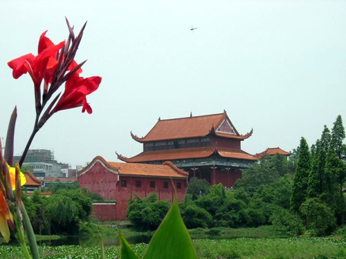 盤(pán)王是瑤族人民的始祖,幾迦嗣衩康揭坏囟家⒈P(pán)王殿,以紀(jì)念先祖。江華瑤族進(jìn)入縣境后,曾立有數(shù)座盤(pán)王殿,但風(fēng)雨剝蝕,早已毀壞。后來(lái)根據(jù)瑤族人民的意愿,將原建于姑婆大山中的盤(pán)王殿遷建于縣城沱江鎮(zhèn)。遷建的盤(pán)王殿,坐落在風(fēng)景秀麗的平頭巖公園內(nèi),地勢(shì)依序?yàn)榈、中、高三?jí),與平頭巖相對(duì)應(yīng)。