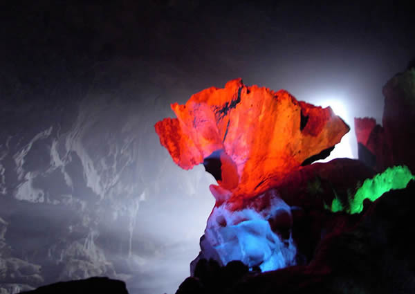 似萬樹千花凡塵不染,千姿百態(tài),栩栩如生,溶洞景觀巖石無論大小,處處雄風(fēng)大氣,陽剛十足,赤壁倒懸,險(xiǎn)峻無比,造型奇絕,特色鮮明。洞中有洞,處處晶瑩剔透,一脈柔情,石獅、石鶴、石樹、石花、石鐘、石幔、石田,有的象“水底龍宮”;有的似“瑤池果樹”、“鯤鵬展翅”、“巨蟒捕食”,有的則如“觀音坐蓮”、“玉女垂幃”,可謂是奇景芬芳,別具一格。巖溶精品,要數(shù)湛稱世界奇寶的“水下晶錐”,1988年3月中美聯(lián)合溶巖考察隊(duì)一行12人來萬華巖進(jìn)行為期一周的考察后,贈錦旗一面,贊美萬華巖是“世界上最美麗的洞穴之一,她可以與世界上所有漂亮的溶洞媲美!本哂蓄H高的巖溶科研、旅游觀光、洞穴探險(xiǎn)價(jià)值。但蓋世絕景是2000年10月中國科學(xué)院地理研究所宋教授一行來萬華考察,發(fā)現(xiàn)的“石蛋生筍”,目前世界上屬首次發(fā)現(xiàn),其價(jià)值是不可估量的。