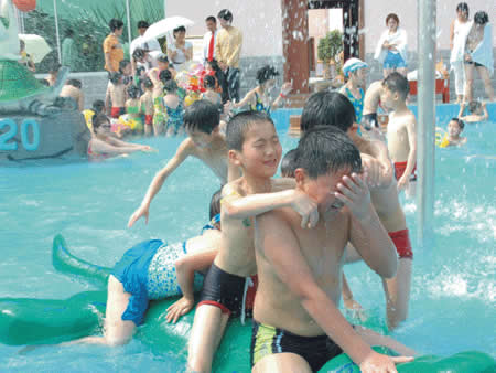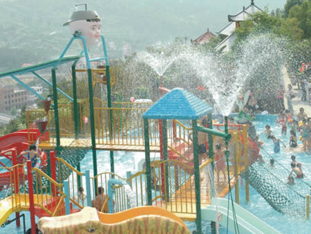 卡通噴泉、急速滑梯……這里的童話世界讓您的孩子恍若天使般幸福、快樂!銀鈴般的笑聲,充滿童稚音的歌聲,響徹云霄。美妙的孩童時光從這里開始,五彩斑斕的人生從這里起步。水溫36-38度,專為兒童設(shè)計,設(shè)有水上滑道和花樣繁多的兒童小品:蘑菇噴淋、水槍、浮漂等,讓您的孩子盡情釋放活潑快樂。