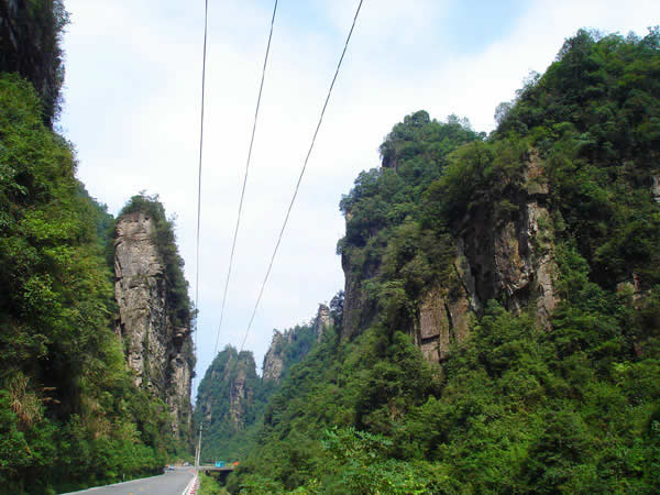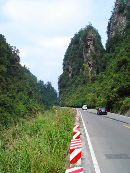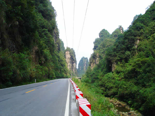 百丈峽圖片 百丈峽是武陵源風景名勝區(qū)通往張家界市的公路貫通整個峽谷,因有堵高近百丈的石壁,直插云霄,不敢仰視,故而得名。據(jù)《慈利縣志》載,索溪峪右得百丈峽,峽長三十公里……又相傳向王天子起義軍與官兵在此先后博殺一百仗,依此又名百仗峽。明代九永兵備胡桂芳,一生好游歷山川,來到百丈峽后題寫了一首七言詩:“峽高百丈洞云深,要識桃源此處尋;戎旅徐行風雪緊,誰將興盡類山蔭!笨逃趰{內道旁石壁上。
