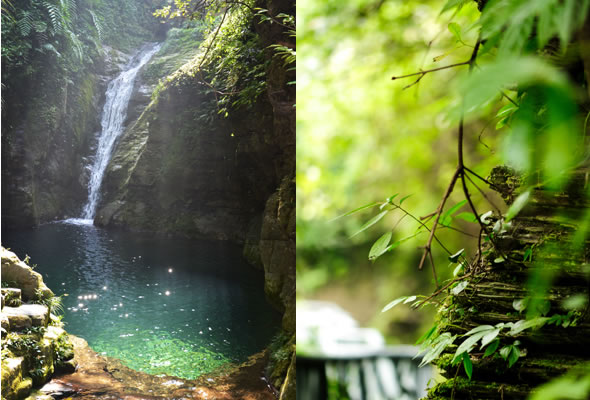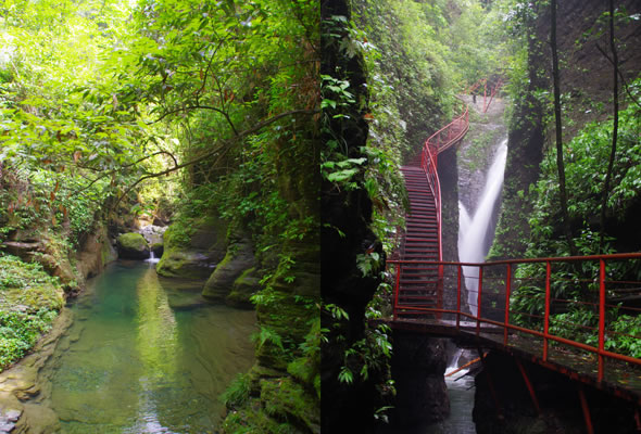 十八潭總名。稍作休憩,我們開(kāi)始奔赴東線的景點(diǎn)。東線主要是以十八潭為主,下游有4潭:合潭、梳妝潭、魚(yú)潭、黑潭;中游有9潭:換衣潭、美人潭、石蛙潭、姊妹潭(3個(gè))、情侶潭(2個(gè))、二龍搶珠,上游有5潭:鬼谷神功(2個(gè))、幽潭、落銀潭(彩虹潭)、路邊潭。十八個(gè)潭深淺不一,淺則1米以上,深則4米左右,形狀各異,有的月牙形,有的豬腰狀,形狀不規(guī)則,石壁上水沖成潭,真是鬼谷神功,此處水質(zhì)細(xì)膩,加之綠林映襯,水色碧綠見(jiàn)底,猶如十八顆翡翠石鑲嵌在山林之間,涓涓溪流晶瑩剔透,飛流直下的瀑布,氣勢(shì)磅礴,蔚為壯觀, 下游的4潭,合潭、梳妝潭、魚(yú)潭、黑潭。合潭是仙女峽谷與十八潭的交匯處;梳妝潭的水清如明鏡,又因?yàn)樘秲蓚?cè)石頭的封閉,使這面鏡子靜止不動(dòng),很方便梳妝,照鏡子。在梳妝潭周圍,有一種植物屬于紅豆杉系列,它的形狀好似梳子,可以用來(lái)梳頭。魚(yú)潭可不能望文生義。魚(yú)潭,是在冬天的時(shí)候,所有的魚(yú)都聚集在這里過(guò)冬,除此之外,這個(gè)潭水淺見(jiàn)底,冬天魚(yú)苗聚集,是捕魚(yú)的好季節(jié)。黑潭,水深不見(jiàn)底,所以叫黑潭,F(xiàn)在已經(jīng)看不見(jiàn)梳妝潭、魚(yú)潭、黑潭了,你猜為什么?建水庫(kù),建水上樂(lè)園,淹沒(méi)了。 斷魂石的傳說(shuō)。三國(guó)時(shí)期,高氏和蕭氏一對(duì)夫妻春節(jié)忙活,遇上了天門垮眼,受余震襲擊,打死了丈夫蕭氏。高氏思念丈夫,淚哭不斷,結(jié)果摔死潭中。人們經(jīng)常還能聽(tīng)到哭聲傳來(lái),不敢單獨(dú)行走,需成群結(jié)隊(duì)。后人為了鎮(zhèn)邪,雕刻一條蜈蚣驅(qū)趕哭魂,多年后,蜈蚣成精,天上打雷,巖石發(fā)光,遭雷所劈,成了斷魂石。 和尚姥,也就是丹灶峰,天門十六峰之一。相傳此峰為仙人化身,赤松子曾在此煉丹,許多詩(shī)人在此留下了美妙的詩(shī)篇,明代葉守禮《丹灶峰》: 懸崖峭壁隔塵寰,上有仙人學(xué)煉丹。 煉得丹成鶴已去,獨(dú)留丹灶在峰巒。 意思是說(shuō),在這險(xiǎn)峻秀麗的山峰上,赤松子潛心煉丹,不受塵世干擾,身心沉醉于秀美的山間,沉溺于丹藥的煉制之中。作者很是羨慕那種與世隔絕的超脫,那種執(zhí)著于自我理想的瀟灑,你羨慕不羨慕? 竹林叢生。我們要學(xué)習(xí)竹子的精神,中空、謙卑;我們要學(xué)習(xí)竹子的精神,抱團(tuán)生長(zhǎng);我們要學(xué)習(xí)竹子的精神,破土而出,節(jié)節(jié)高。 向家塔。打造農(nóng)耕養(yǎng)生游的地方。種田、種菜、種花,農(nóng)家餐館。 爛泥巴根。爛泥巴根和馬桑樹(shù)是同科,是這里獨(dú)特的一種樹(shù)。馬桑樹(shù)亦稱“千年紅”、“馬鞍子”,屬落葉灌木,馬桑樹(shù)多枝叢生,一簇一簇的,枝葉像傘蓋,因此“馬桑樹(shù)兒搭燈臺(tái)”。春風(fēng)一吹,滿山的馬桑樹(shù)、爛泥巴根就吐翠滴綠,顯示出強(qiáng)勁的生命力。打油詩(shī)一首: 青青枝條四方走, 肥肥大葉落上頭, 身在路邊無(wú)人問(wèn), 冬去春來(lái)樂(lè)悠悠。 秋天死亡,春天長(zhǎng)勢(shì)更加茂盛,它的新生是通過(guò)死亡實(shí)現(xiàn)的。山川如此,植物也是如此,這里的一草一木無(wú)不透露著道家那種齊生死、等貴賤的精神。 這叫“常道”亭,“道可道,非常道”,據(jù)說(shuō)是白狐與劉海相遇的地方。吊橋。 十八潭各具特色。 中游有9潭。第五潭叫換衣潭。巖石聳立,霧氣氤氳,巖壁上布滿水汽,猶如雨下。又因過(guò)道狹窄,行人需彎腰通過(guò),未免雨水打濕衣裳,在此就要脫下身上衣物,通過(guò)后在第六潭再穿上。因此第六潭又叫美人潭,很幽深神秘的。第七潭叫石蛙潭,水淺,又比較平穩(wěn)、安全,春天產(chǎn)籽。余音回響,猶如蛙鳴,給人“聽(tīng)取蛙聲一片”的錯(cuò)覺(jué)。 對(duì)面巖壁叫“臘肉鋪”,那條自上而下的溪流叫“酒長(zhǎng)流”,客人來(lái)了,咱土家人熱情,臘肉下炕,苞谷燒,喝兩口! 第八潭第九潭叫情侶潭,比較隱蔽,他倆靜悄悄地談著情話,我們快走,不要打攪他們。 第十潭、十一潭、十二潭叫姊妹潭。下面那個(gè),水淺淺的,溫溫的,是幺妹潭,中間那個(gè)是二哥潭,上面那個(gè)是大哥潭。 潭的旁邊有珍稀植物馬蘭花,馬蘭花又名蝴蝶花、蝴蝶蘭,為多年生宿根草本花卉,根莖短粗,肥壯;ù笮缕,花色絢麗,鮮艷奪目;ㄓ兴{(lán)、白、黃、雪青等色;ㄆ5-6個(gè)月,每次花可開(kāi)花7-10天,頗耐觀賞。馬蘭花在我國(guó)栽培已有2000多年的歷史,目前歐、亞、非3洲均有分布,品種極多,難以計(jì)數(shù)。此花按植株高度不同可分3種類型:矮株型僅18-25厘米,中株型高25-70厘米,高株型可高達(dá)120厘米。馬蘭花喜陽(yáng)光,適栽于背風(fēng)向砂質(zhì)土壤中。 馬蘭開(kāi)花的童謠。他們?nèi)⒚眯r(shí)候情感深厚,常常一起跳皮筋。大家會(huì)跳嗎?會(huì)唱嗎? 小汽車,滴滴滴,馬蘭開(kāi)花二十一, 二五六二五七,二八二九三十一, 三五六三五七,三八三九四十一, 四五六四五七,四八四九五十一, 五五六五五七,五八五九六十一 。…… 還有紅豆杉,像梳頭的篦子,叫“篦子三尖杉”。還有蘭心草,中草藥,空中飄來(lái)蘭花的香氣,山谷中峭壁的蘭花,如芳芳人品善良高雅。蘭花如人品有宜人的香氣,蘭花有撩人的幽香,任何花卉的香氣都不能與蘭花比。這幽香時(shí)隱時(shí)現(xiàn),時(shí)濃時(shí)淡