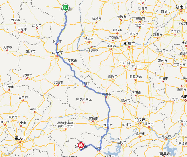 延安去張家界自駕車自助游線路圖全程高速):
