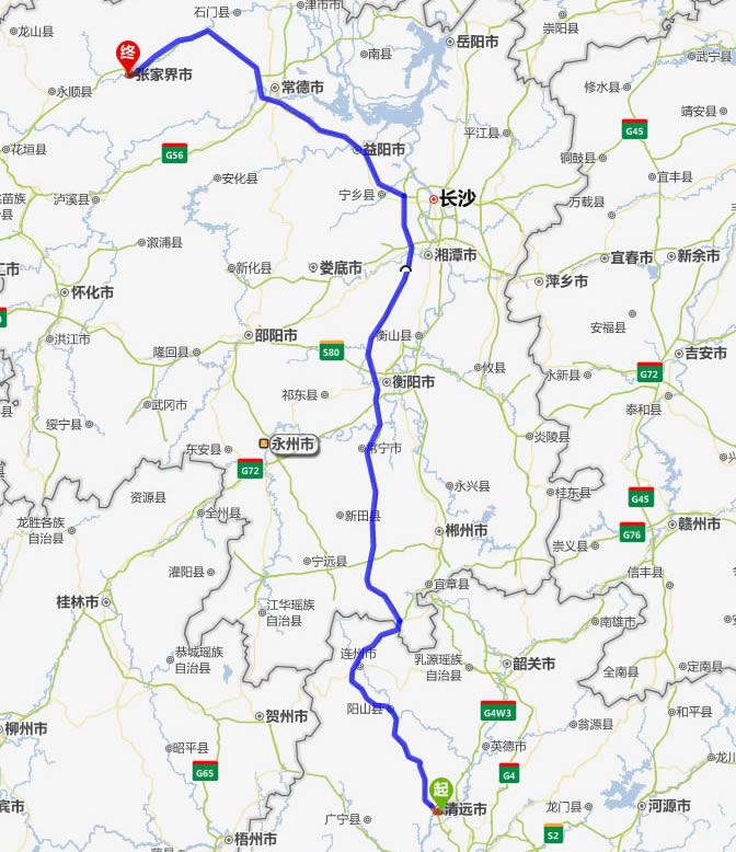 現(xiàn)在位置:張家界旅行社->交通指南->自駕車路線 -> 清遠到張家界旅游自駕車線路,清遠去張家界自己開車要多長時間,有多少公里