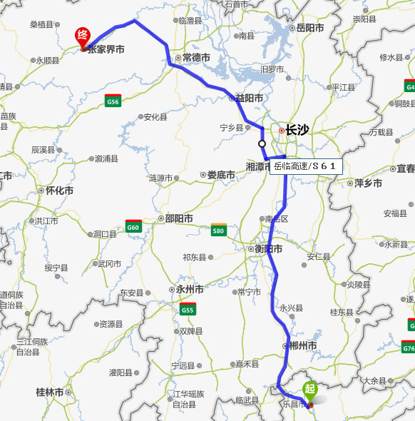 樂昌去張家界自駕車自助游線路圖全程高速):