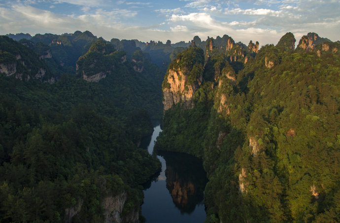 現(xiàn)在位置:張家界旅行社->旅游資訊 -> 航拍晨曦中的武陵源百丈峽 宛如人間仙境
