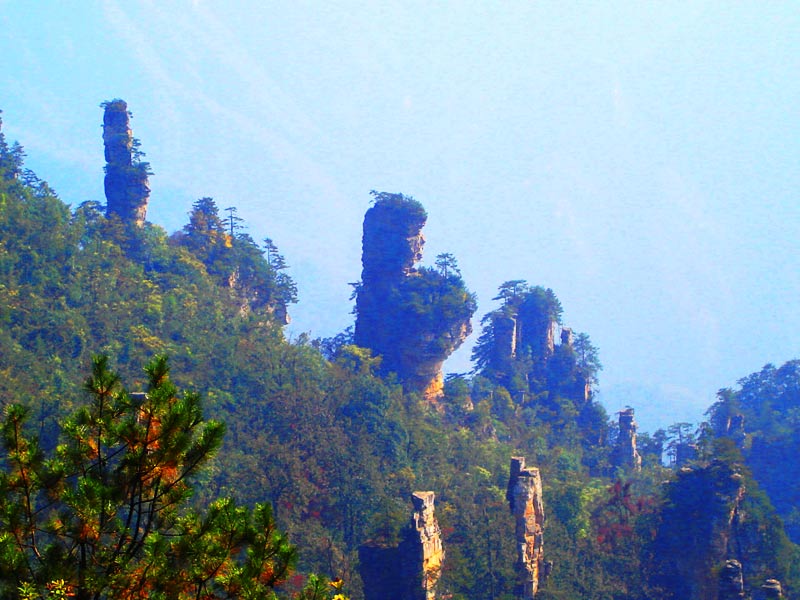 上 午: 旅游車前往中國(guó)第一個(gè)國(guó)家級(jí)森林公園——【張家界國(guó)家森林公園】(約40分鐘車程,門票245元+5元景區(qū)保險(xiǎn)已含)。游覽大氧吧廣場(chǎng)(每立方厘米空氣中含8-10萬(wàn)個(gè)負(fù)氧離子),登海拔1200米、張家界最大的凌空觀景臺(tái)——【黃石寨景區(qū)】(黃石寨可以乘索道上下,也可以徒步上下。如果選擇乘坐索道,單程65元/人、雙程118元/人自行購(gòu)買)。黃石寨山頂千山萬(wàn)壑盡收眼底,沿著山頂環(huán)寨游道行走,可欣賞到許多絕美的自然風(fēng)光,沿途有六奇閣、摘星臺(tái)、雙門迎賓、五指峰、霧海金龜、天然壁畫、黃石松、回音壁、九重壁等景點(diǎn);